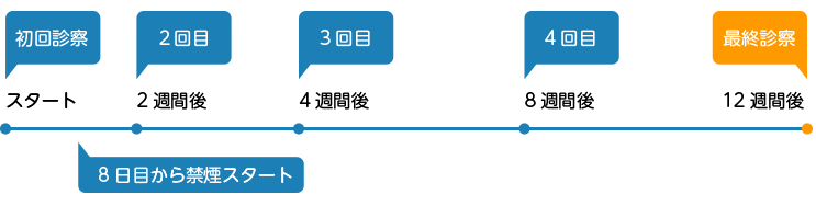 健康保険等を使った禁煙治療では、12週間で5回の診察を受けます。
